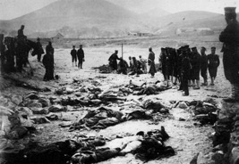 [山地元治](?-1897)1894年中日甲午战争爆发时任第一师团长,率部于辽东半岛花园口登陆,同年11月先后攻占金州城、大连湾、旅顺。纵兵虐杀四日,杀害旅顺市区无辜平民近2万人,制造了骇人听闻的旅顺口大屠杀惨案。